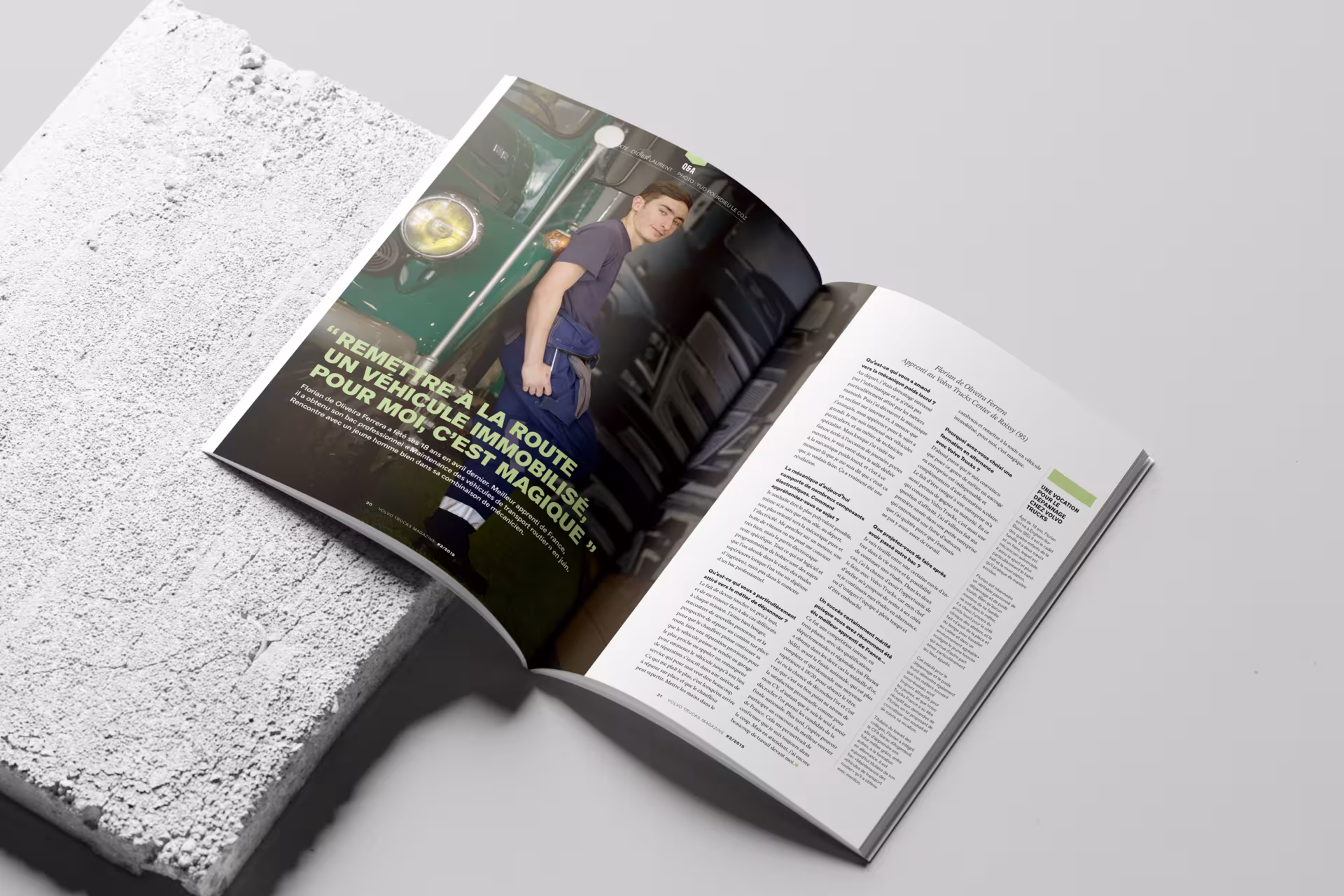 À partir d’une charte graphique fournie par le siège de Volvo Trucks situé en Suède, Futurama a réalisé la conception/création, design et mise en page d’un magazine de 48 pages traitant des innovations produits, sécurité, performances, témoignages clients, etc.